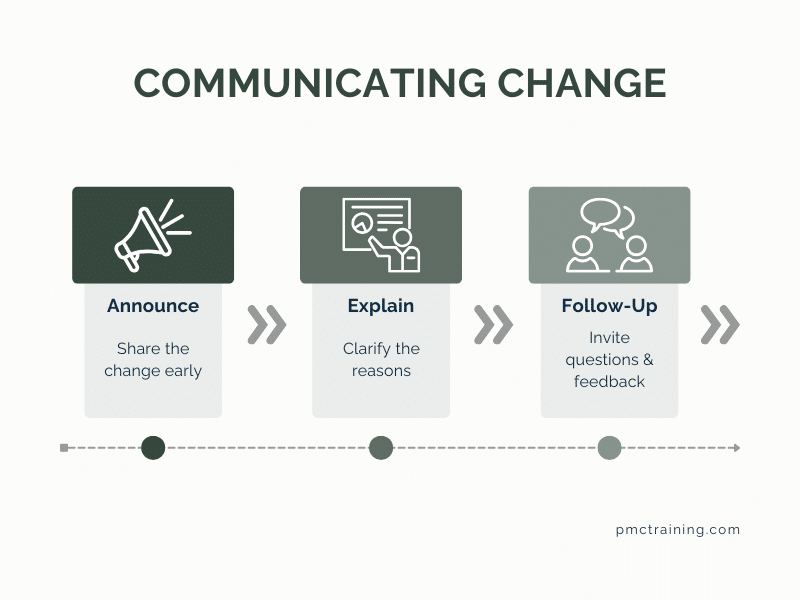 - For Managers: Use a simple three-step communication rhythm: announce the change, explain the reasoning, and follow up with space for questions. For example, after a policy shift is introduced, schedule a short Q&A the following week and share a written summary of the most common concerns. This rhythm reduces uncertainty and reinforces that managers are listening.