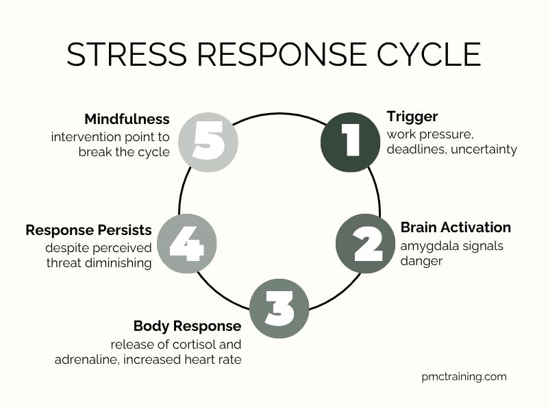 Physiologically, the stress response floods in hormones like cortisol and adrenaline, and increases the heart rate and blood pressure to send the energy to the extremities of the body to physically defend yourself. This is overkill when a manager is giving some critical feedback – taking your mind to a place of fear and anxiety, thinking your job maybe at risk – or worse still, your body thinks you are going to die.